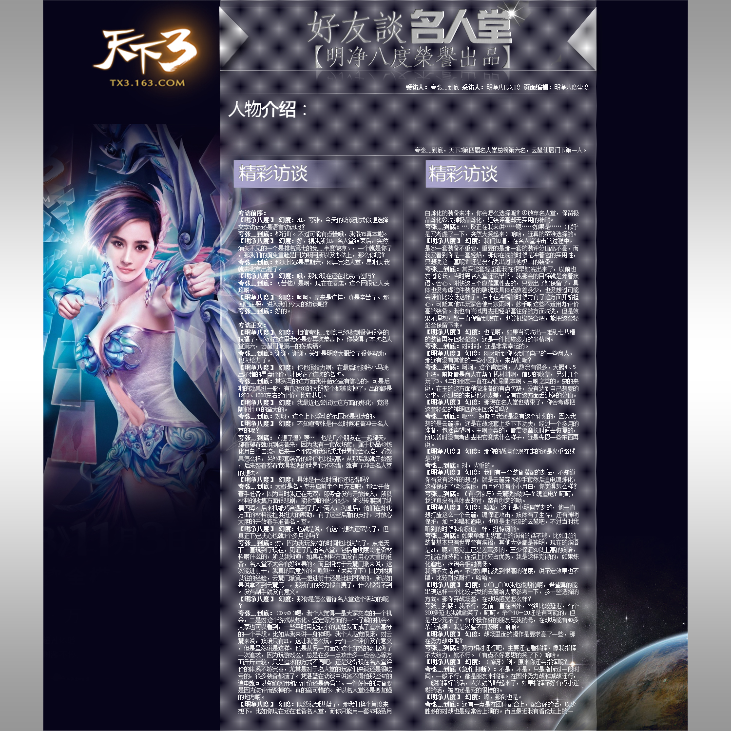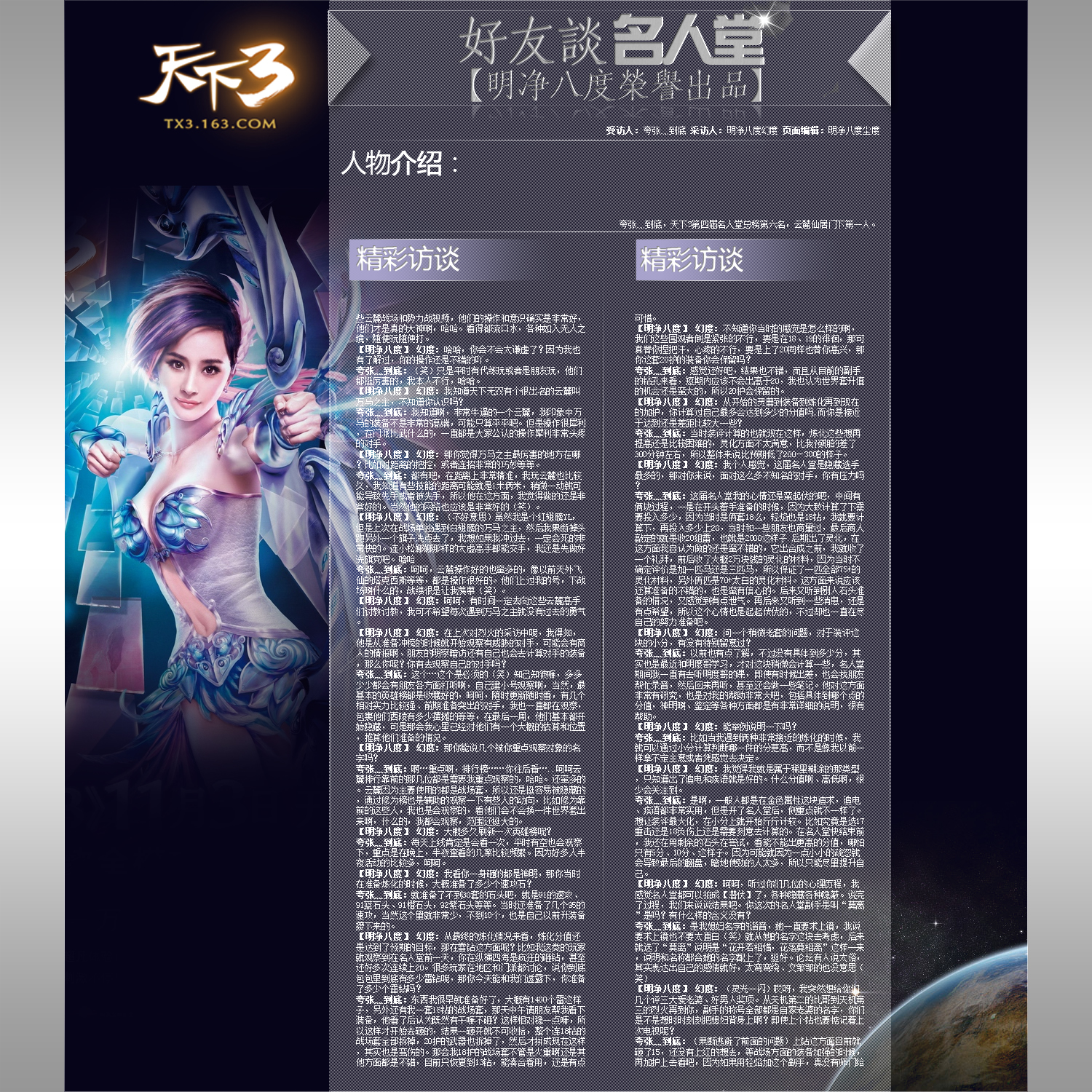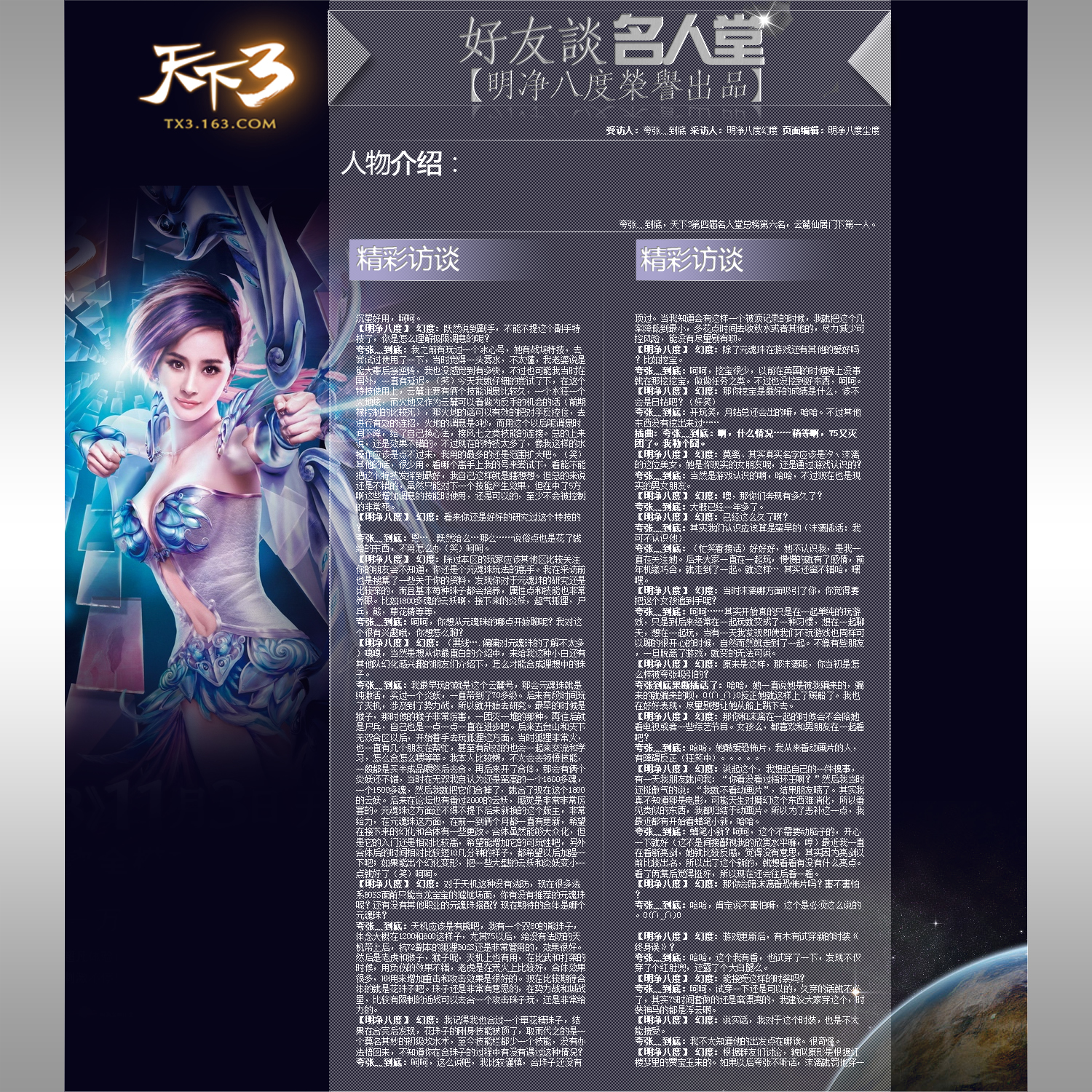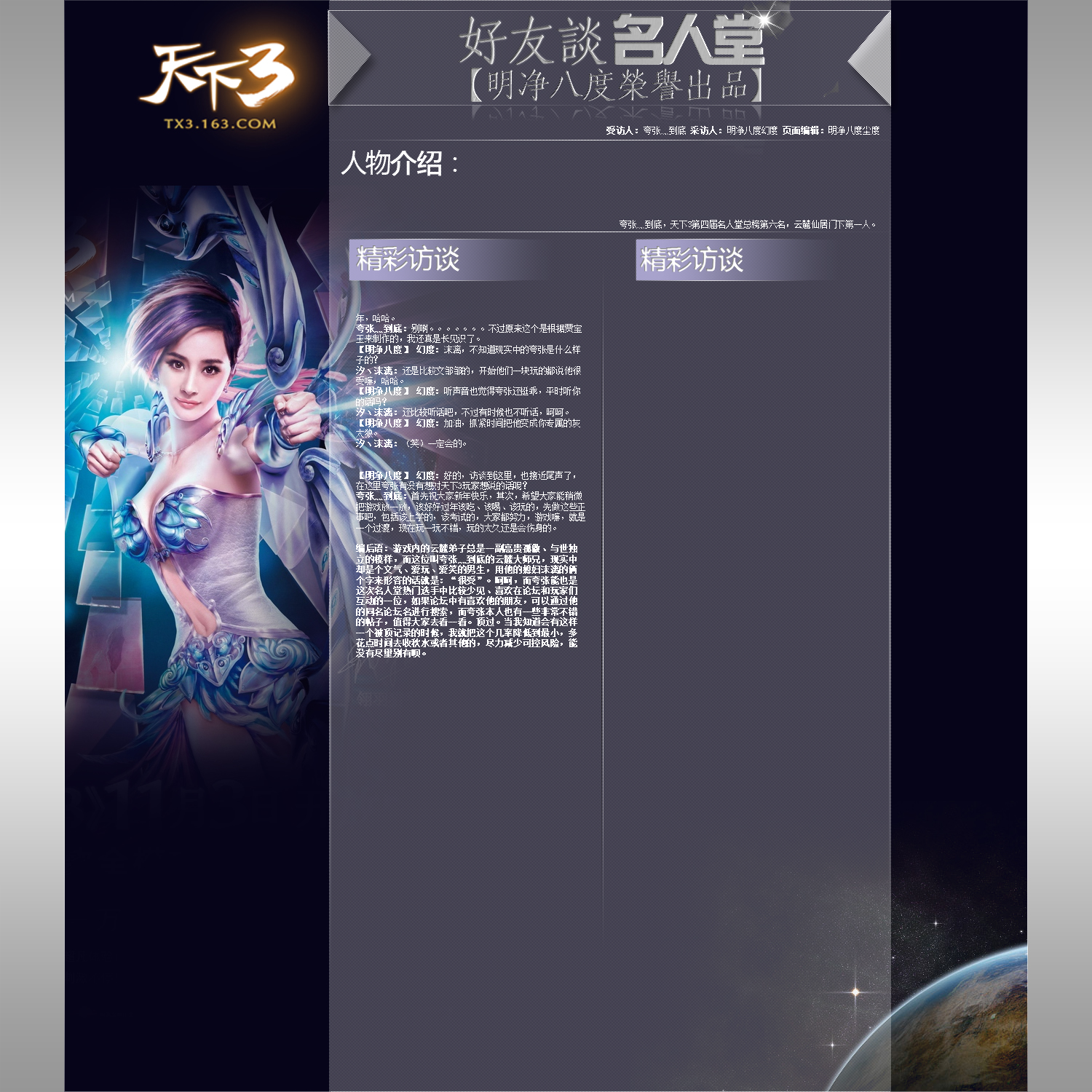 为整理这2小时的访谈录音,我从晚上12点一直搞到早上8点半,| 欢迎光临 《天下3》官方论坛 (http://tx3.netease.com/) | Powered by Discuz! X3.3 |