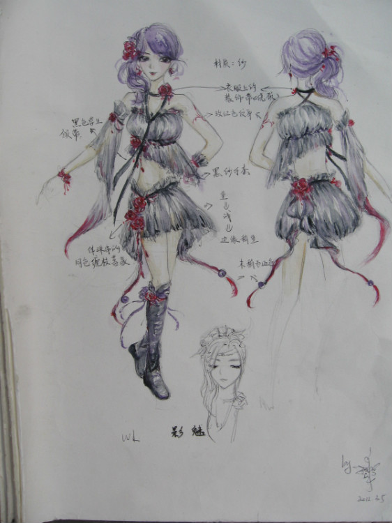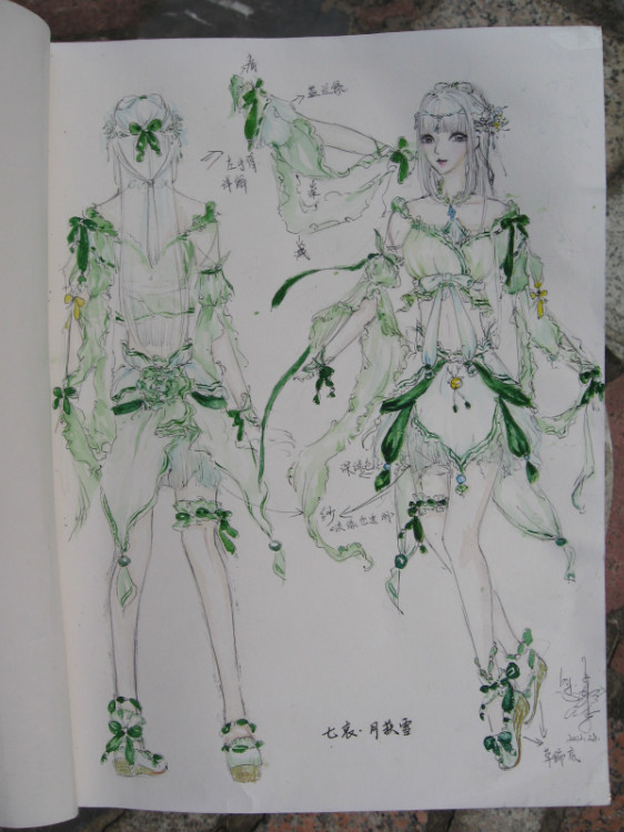 后两套是情侣校服,作者妹妹说是设计这套衣服,是为了纪念一个人,纪念逝去的爱情。