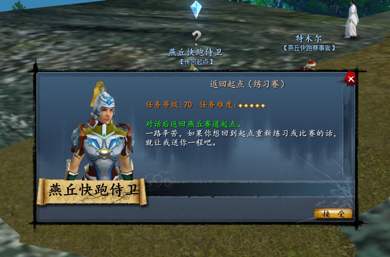 完任务后,任务NPC旁边的“燕丘快跑侍卫”可直接传送回起点。方便快速进行下次任务的领取。