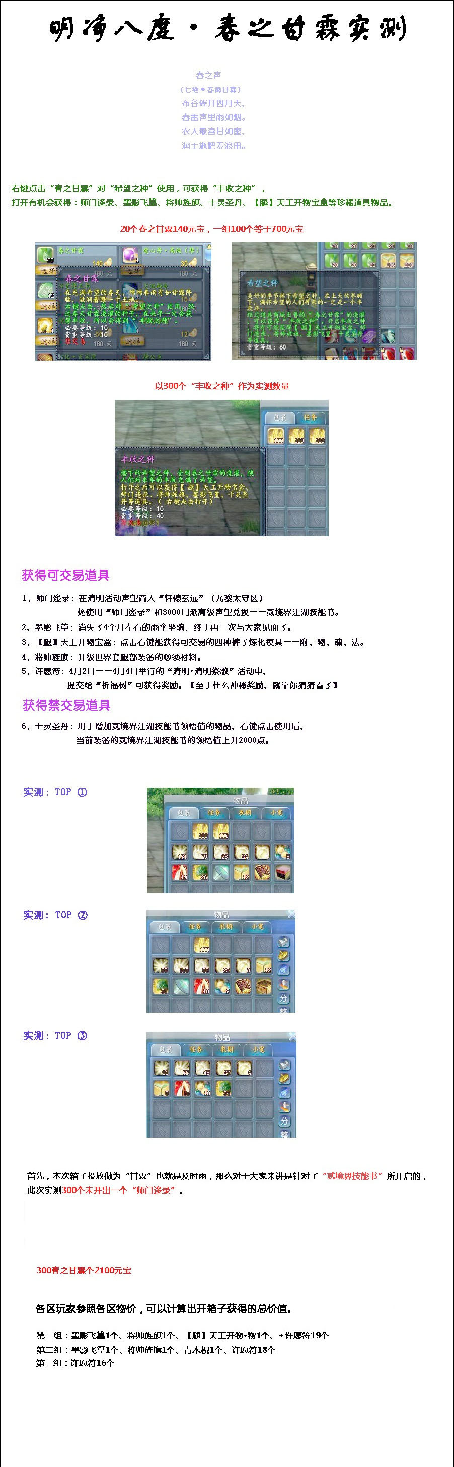 NO.3春之甘霖几率实测