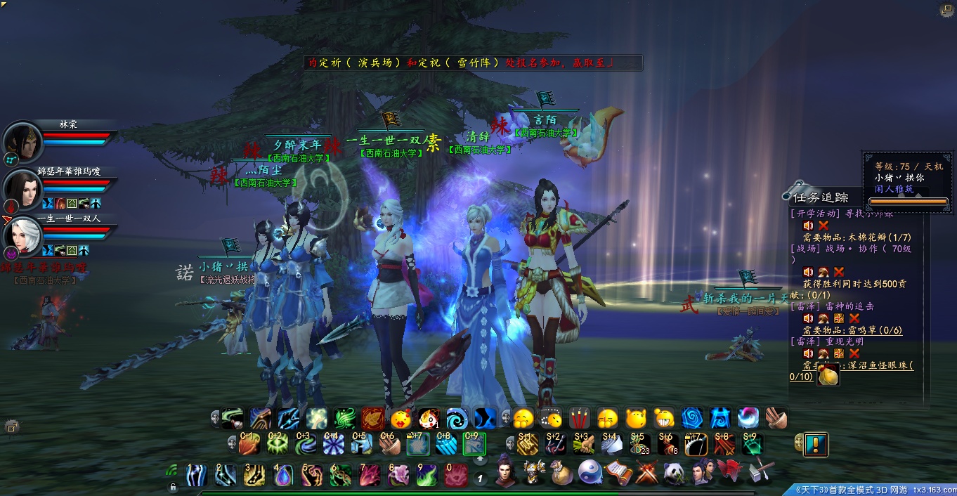 如图,把你在游戏里可以召唤到的尽量召唤来,包括灵兽、小宠和幻化,当然你还可以找来自己的老公、老婆和好基友,总之越多越好啦!