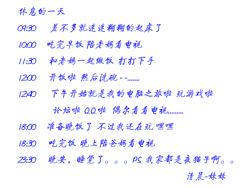 我的时间表,先说好大家看完不许笑不许笑……哼哼