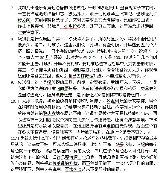 1.菜鸟和老手的区别是什么?不是人头多的问题,而是死亡次数。一个老手不管他玩什么职业,都不会那么容易送死,所以新手不要先想着杀人,应该先了解技能和职业,其次是尽量减少死亡次数,会衡量眼前的局势情况,随时退或进。
