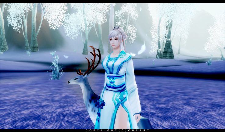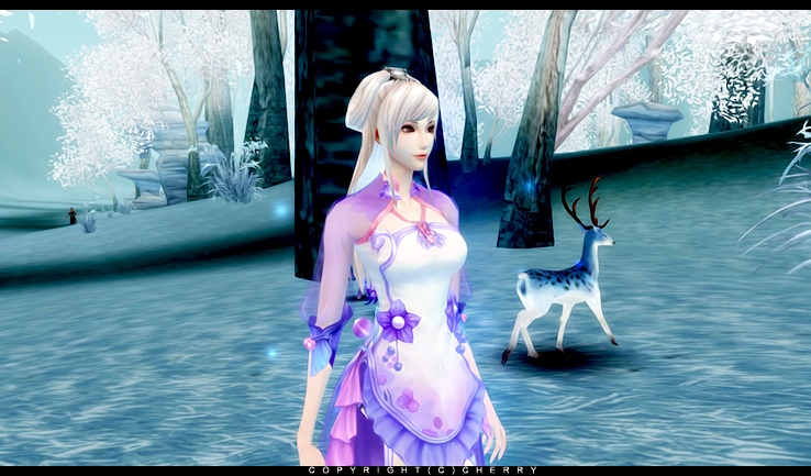 一号脸 + 白露(帽)+ 姹紫(衣)+ 月魄(光环)+ 菡萏晴好(坐骑)