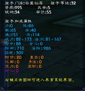 BX:孩子自身基础属性是魂念疾体,对于BX来说没有废属性,而且本门派的孩子在养育系统后续发展中必然会有一定的优势.