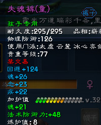 裤子换了一个选择选择的是63难本的失魂,魂念疾属性,不随机.缺点是等级较低,基础法防和回避比较低.有条件全推67,接近满属的敏魂体朱凤和力魂念岚凰都可以考虑.