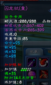 武器个人选择的是72手工,囚龙杖的满攻为375法攻,髓内的满攻为268,满属性点为28,附伤重击为14.这一类的优势在于获取容易,可以洗出比较满意的属性,缺点是各类限制解除麻烦,外加洗起来随机三太看脸.针类还可以选择毒尾(重击流性价比最高),留情,刹那,莲华,寒铁,彼岸花开.古观本的冰寒玉毒推荐度很低,我刷了一个月左右出了4把针,最高的只有29念26体,法攻251.随机性太大了感觉还不如刹那.