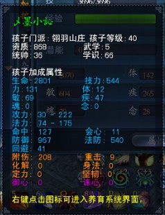 孩子、坐骑都是弄了的,属性如下: