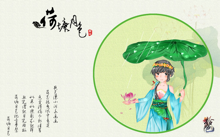 标题: 【拾色天下】荷塘夏月_手绘桌面°荷塘月色·荷风
