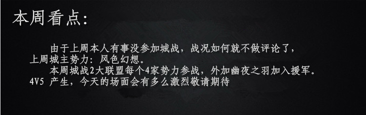 本周城战从一开始就是场拉锯战,从头到尾的是双方集中所有兵力硬碰硬,各种卡屏战,左手撸疼换右手,多以我