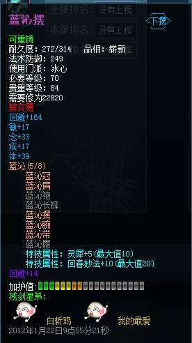 刷出的第一件战场套~那个时候决定卡74战场~可惜洗了3次都没有洗成满属性!!
