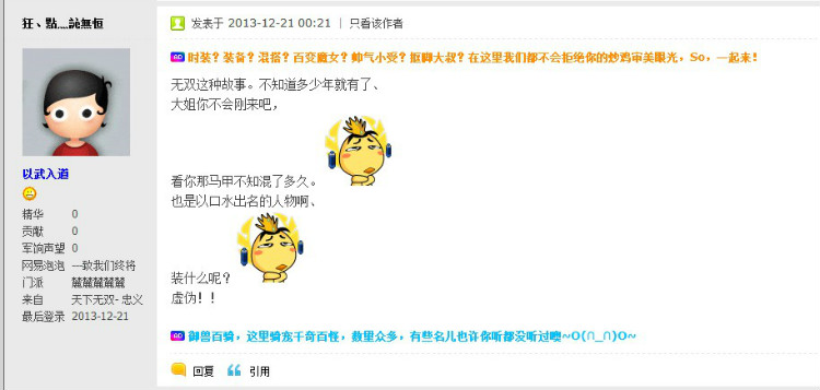 一定要立个牌坊才能证明不是那个啥的应该是此帖LZ吧?非要说自己是个看不过去的正义人士,这正义人士也忒有偏向性了吧?都无双混多少年的人了,要说是第一次见这种天下,我能说一句纯属瞎扯淡吗?