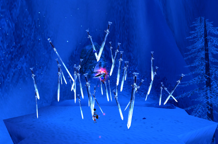 当看到这些剑的时候不要犹豫,跳上去,这样的台子整个锁妖塔一共貌似有三个。 坐标 东150 北280