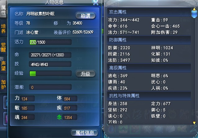 1.不带脉裸属性,疾语23。(孩子差两件装备,还有提升空间)