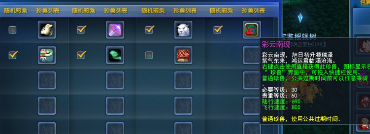 3.珍兽不是很多,但是冰吼,和会飞的双人坐骑必有。26个小宠。