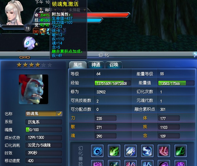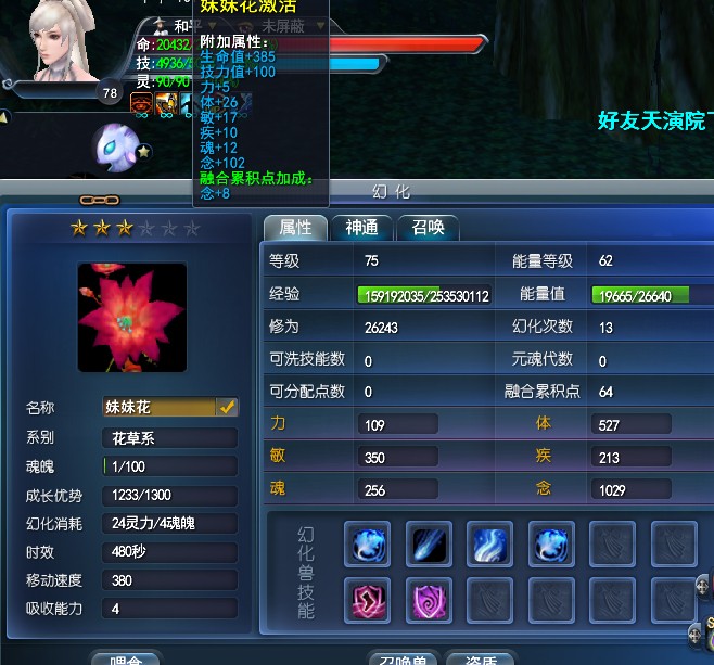 4.激活珠子。300融合鬼,喂的不是很高,还有一个妖花。仓库有几个技能珠,打算合成品的,没心思弄了。