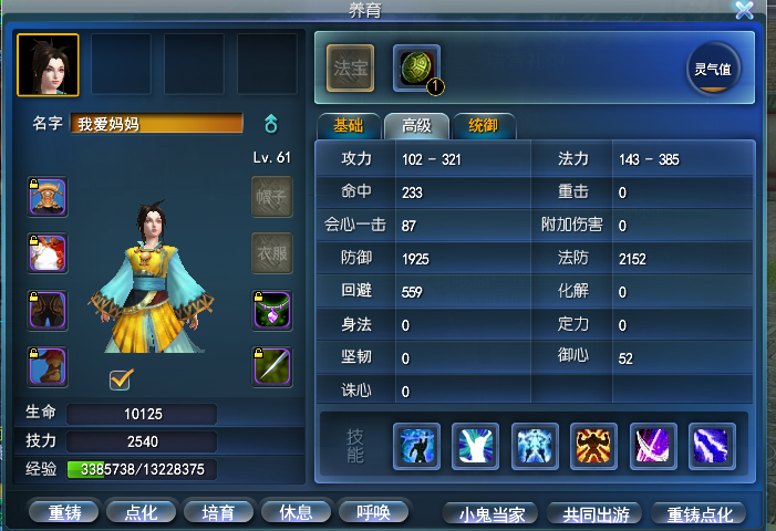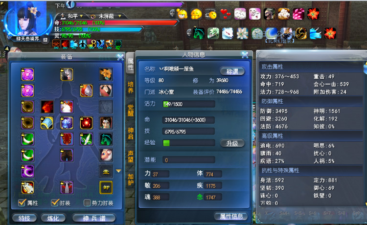 ④孩子洗好,装备成型,点化尚算可以,马忘了截图,大家可以看英雄榜,两匹马灵化都好的