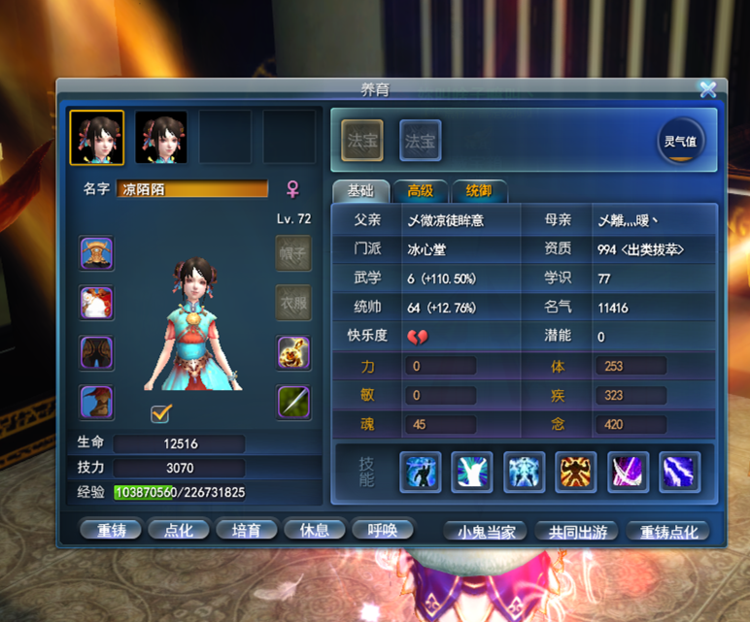马、一共三匹 念马80级15灵光太阴灵化 二境界岐黄 疾马70级12灵光 二境界子午 魂马67级 二境界毒经