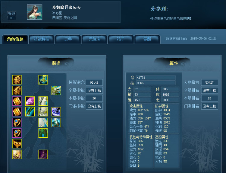 这是之前人物洗疾 马儿洗疾 带鬼珠子的英雄榜属性图