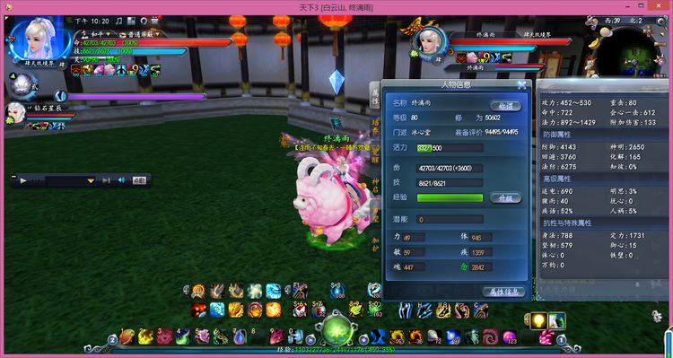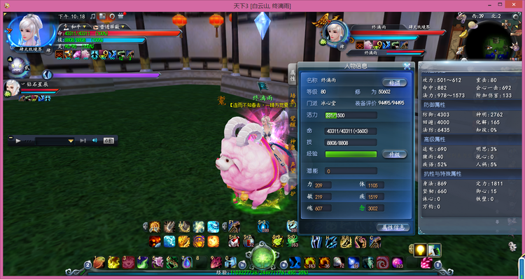 游戏裸属性,为了凑特技(火元+物理防护)选择了战场和75真首饰,所以牺牲了很多蓝色属性,