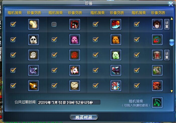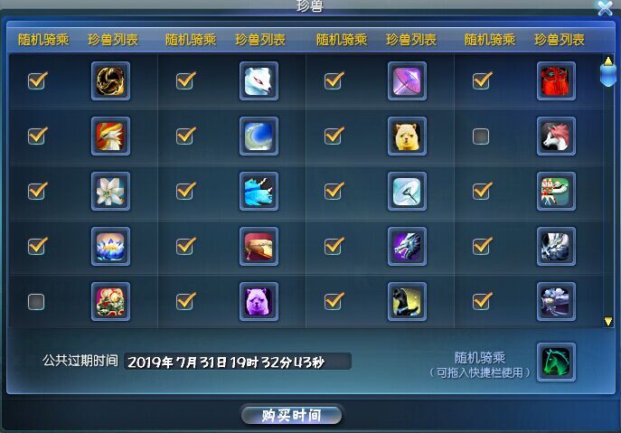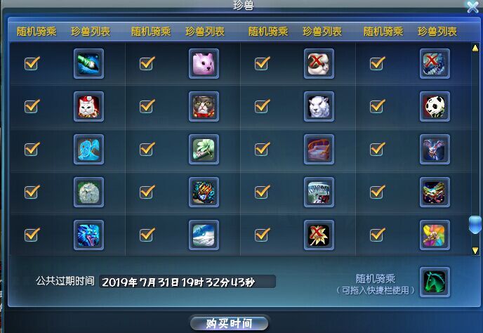 时装跟坐骑,时间到19年,熊猫云狐琥珀儿,基本除了小金狗其他的全了: