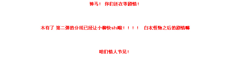 木有了 第二弹的分线已经让小柳快shi啦!!!! 白衣怪物之后的剧情嘛