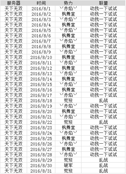 【翰书天下·战报】【天下无双】2016.8.20势力战战报