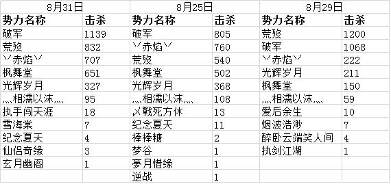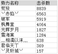 击杀数势力排名
