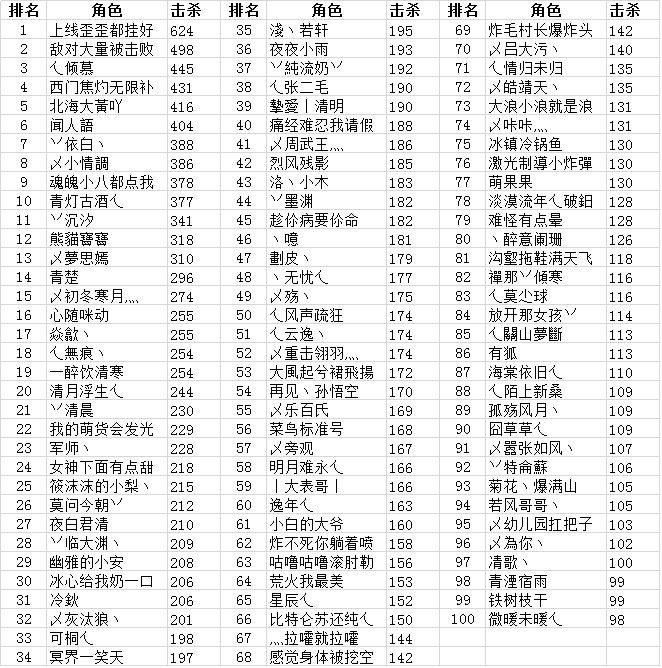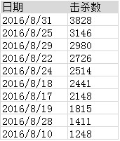 产生击杀数最多的10天