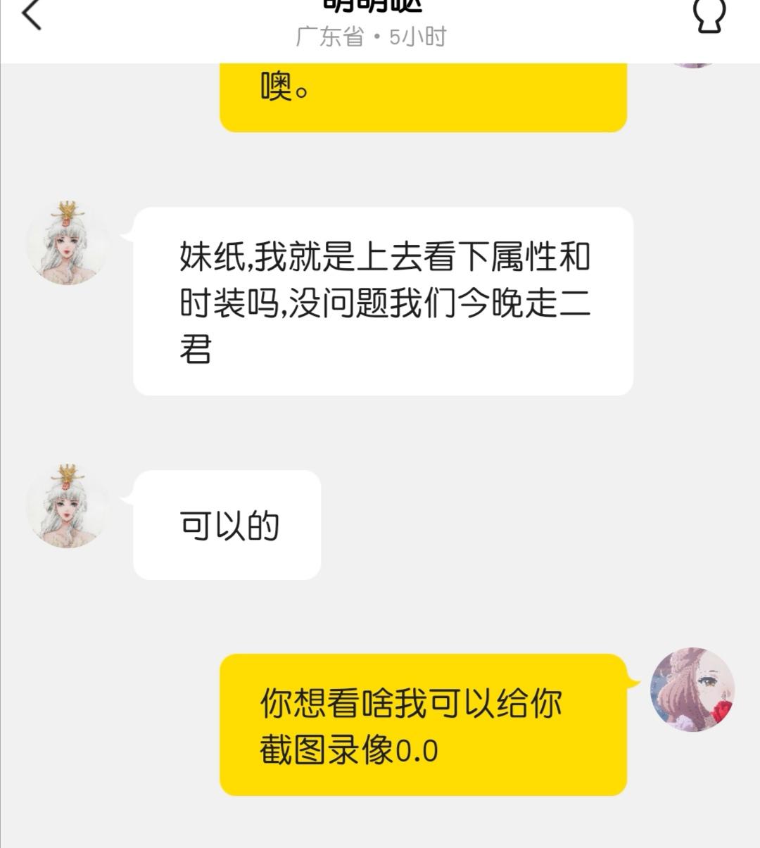 最近号要出售 留了联系方式 但是有个人要加球球 说是在预算之内 要上号看下属性时装 满意就要了 我没同意录了视频给她。。然后醒了就发现被删好友了。。。