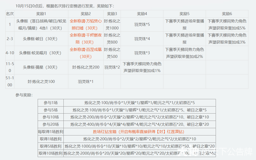 4、榜单将按照上钻总分、收到点赞数、上榜时间进行排名,10月21日22:10活动结算后的第一名玩家将会获得限时头衔“红莲炽尊”。