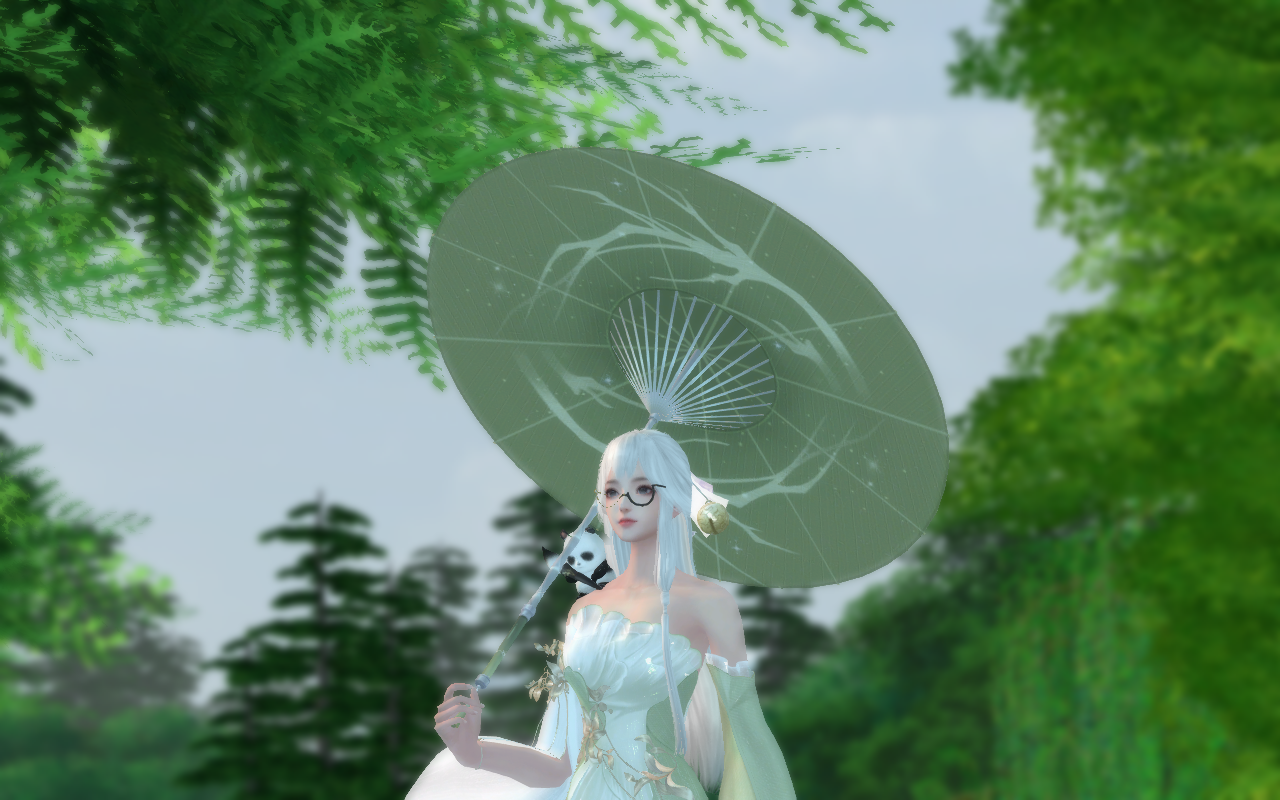 | 我也觉得这把伞和千峰翠色这件时装特别配,仿佛就是一套。正好我也有小熊猫。 |