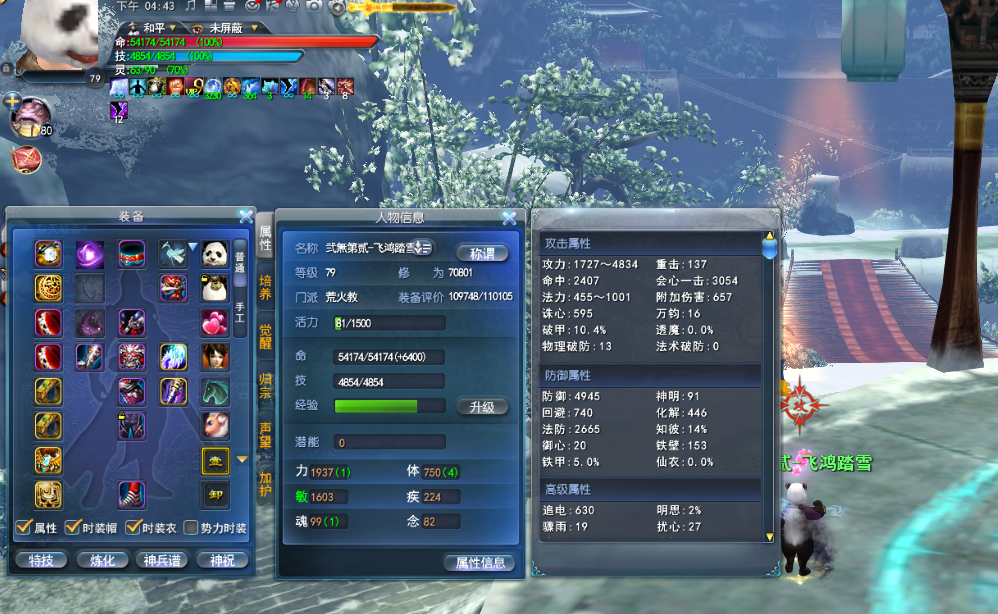 这么说吧,玩这个游戏不想投入最好玩个弈剑,同样是个没有装备,没有孩子的小号,人家面板多几百御心,猪心,开状态还有几百大工,20破甲,还有10的对怪加成,你就说强不强吧。 |