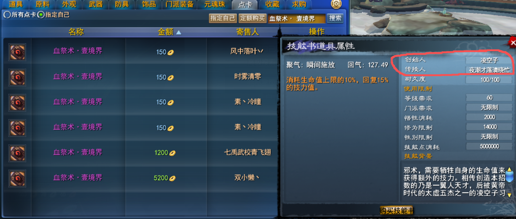 、流氓兔 发表于 2025-12-1 23:03 河南 可是血祭术 NPC换不到啊 只能寄售买啊 寄售里的 都是有名字的 |
