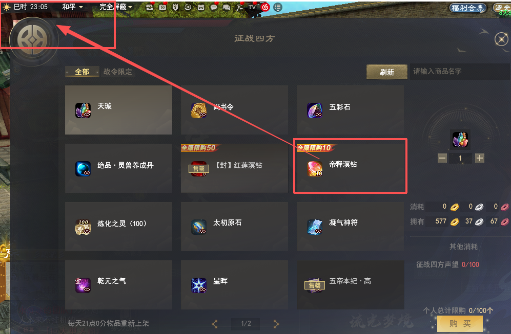 这活动刚开始第一天,10点更新完我卡着时间上线,商店里就只有9个帝钻了,过一会儿又变成了10个