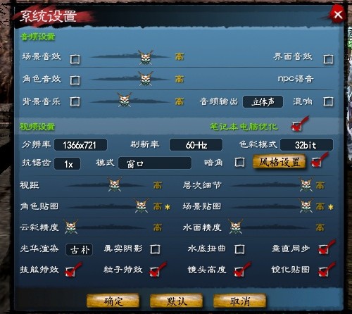 自从某次更新后,不知道为什么画面就特别亮了...水墨古朴如果带翅膀的话,亮的腰都看不见.....自己最好能调一下对比度和亮度这些