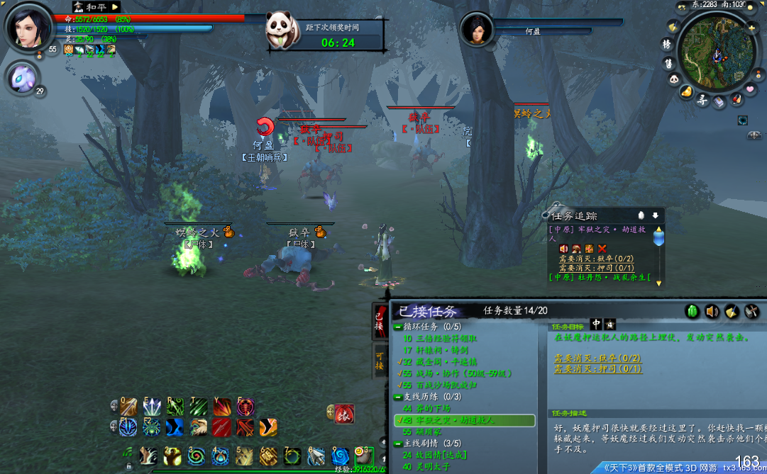 谁实话,这个任务难度有点大。因为是要打三个怪,而且这三个怪有一定的活动范围。应该是以何盈为中心怠壕妫鹤⒁馕拿饔糜铮 晃区域。