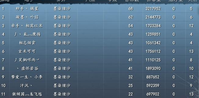 所以在此送上谁与争锋各势力战绩前十名