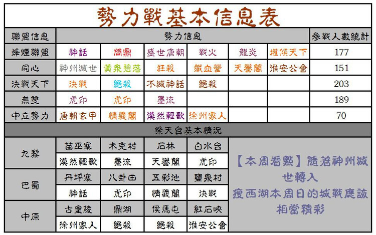 (插播广告:老湿不打势力战,做个战报肯定有欠缺的地方,收集的信息也不全,如有提供势力战信息的可以跟帖指点。切勿喷我的帖子。因为做战报是出于好心免费为大家服务的。所以某些同学不要站在说话不腰疼嫌弃我的帖子怎么怎么样不好。因为老湿上辈子是折翼的天使