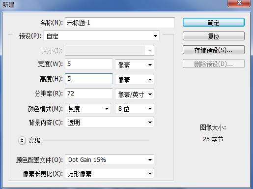 第十一步,选择”编辑“——”填充“,在“使用”这一栏中选择“图案”,然后在下面自定图案中选择我们刚刚保存的那个5x5的图块,点击确定: