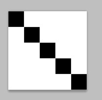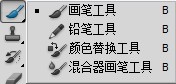 (右键点击画笔工具就会出现右侧的四个选项了),用大小1像素的铅笔工具在图中画出一条对角线: