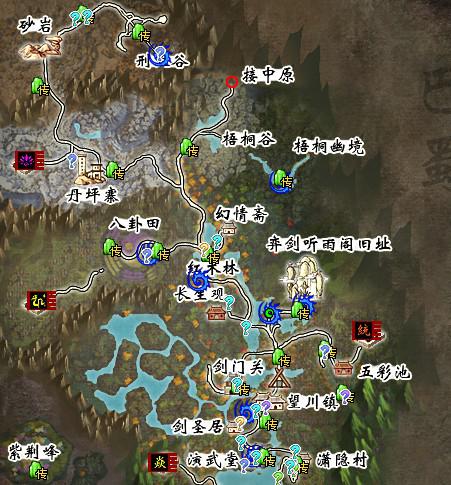 巴蜀地图: 丹坪寨:不夜国度 八卦田:御剑山庄