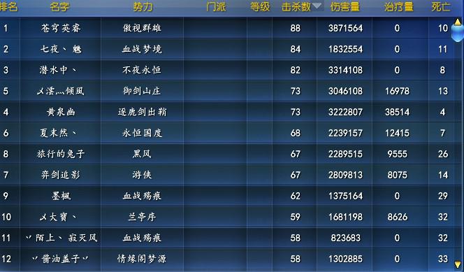 ~~~~~~~~~~~~~~~~~~2012/09/01人头榜,伤害榜,治疗榜~~~~~~~~~~~~~~~~~`