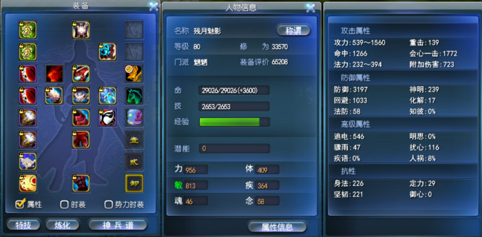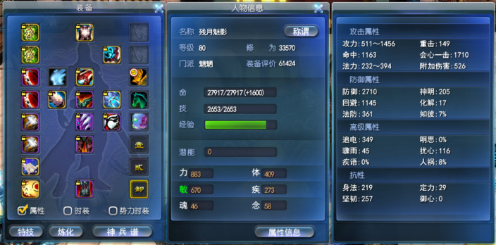 话说 回避没到2500左右根本不够看啊..真的 我瞟了下八大门派的属性 除了WL 其余门派命中基本在1100以上