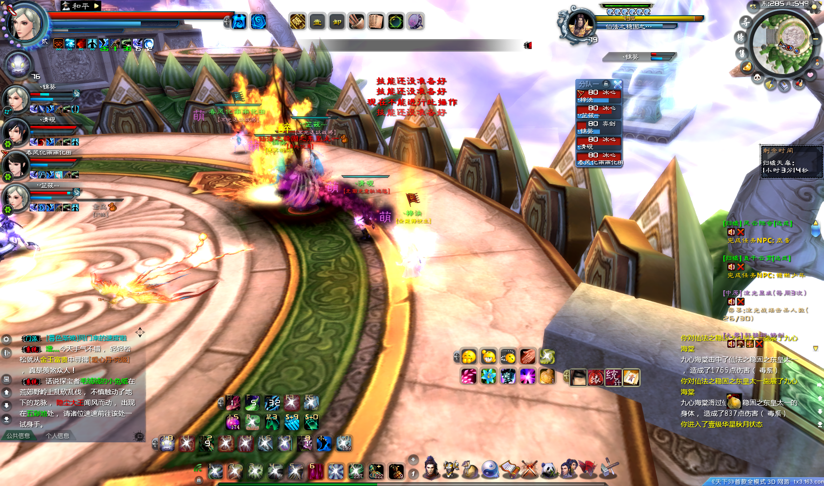 补充一下: BOSS血量降低到89%、19%的瞬间会召唤4个小怪(云妖,法术群攻,不吃强控,吃弱控),先消灭旗子可以削弱小怪。BOSS血量降低到79%、65%、51%、37%、23%、9%的时候会把所有人往中间传,然后在中间的圈圈范围内开始无敌洗衣机。