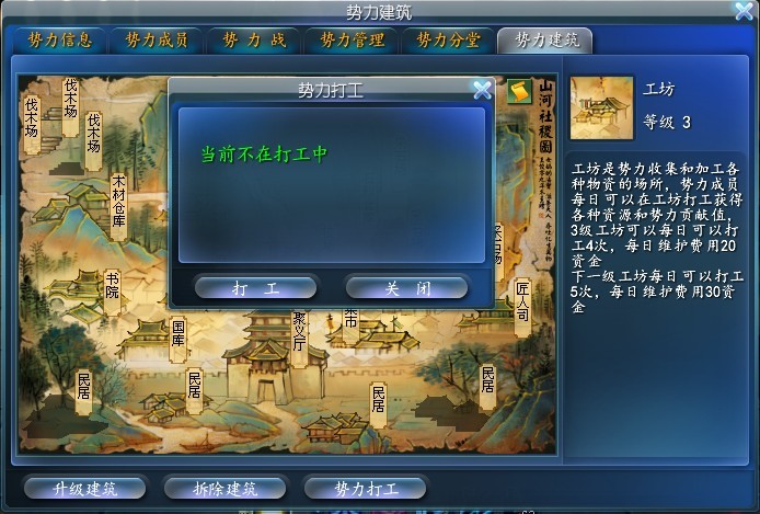 势力打工如下图。打工期间不影响正常游戏且在某次更新后。进战场前打工也会计算在内~