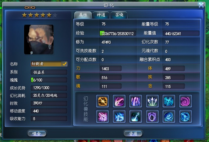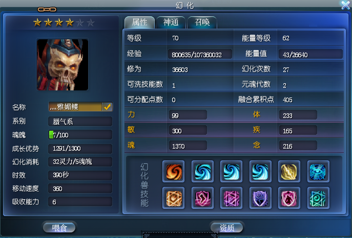①元魂珠 ②幻化后属性 ③技能伤害