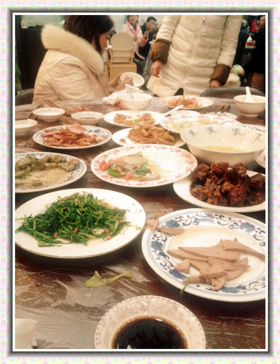 凉菜热菜齐上桌,一家热热闹闹吃团圆饭。