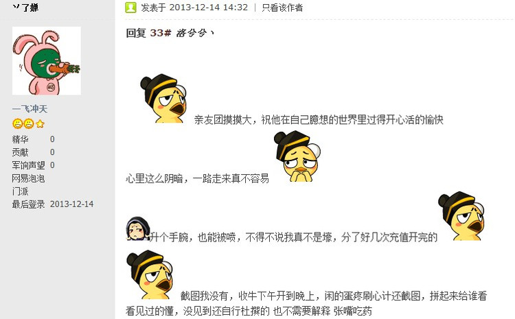 真同情楼主,竟然被这种人咬上了,虎摸,赶快找版主把帖子关了吧,我都快看不下去了,大千世界,真是无奇不有...| 欢迎光临 《天下3》官方论坛 (https://tx3.netease.com/) | Powered by Discuz! X3.3 |