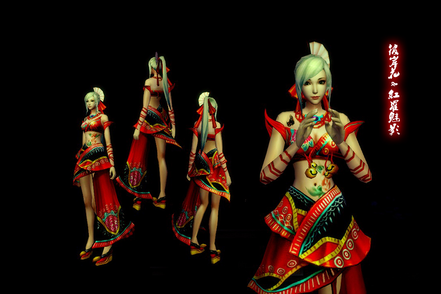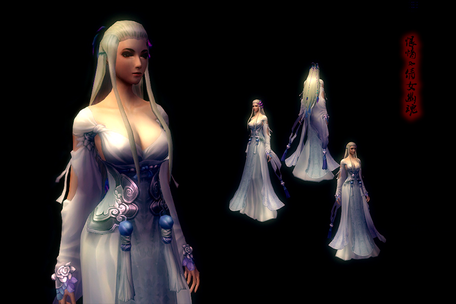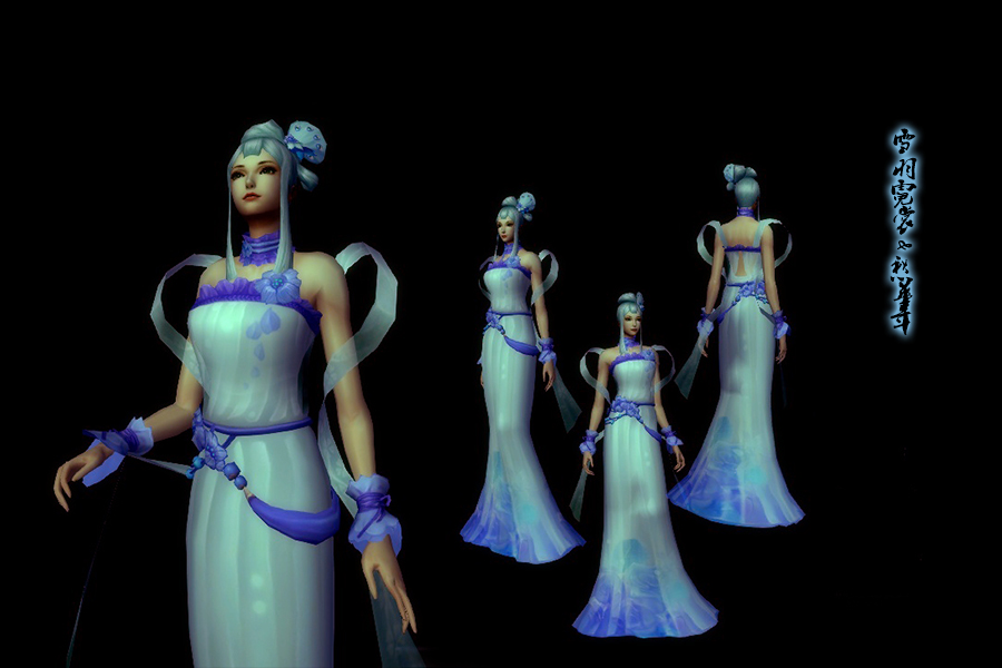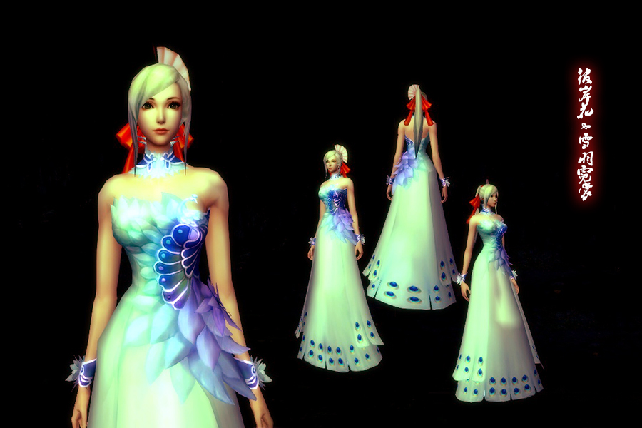 觉得背影跑起来最好看的就是雪羽霓裳了,裙摆点赞,彼岸花的红色在单调的浅蓝白色里提了点亮,甩动的马尾很俏皮。